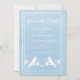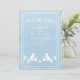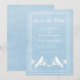 Elegant and simple Wedding save the date invite featuring a pair of lovebirds resting on a floral vine against a Blue background. This design is a unique choice for announcing a modern wedding. Easy to customise with your wedding details. Click "Customise It" to find more personalisation options.