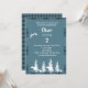 A blue grey lumberjack themed party invitation for a boy's 2nd birthday party. Templates for name,age two 2 and party details. Blue grey plaid checked flannel pattern, forest and wildlife silhoettes in white. Trees, moose, rabbit, fox and an eagle. White letters.