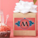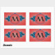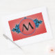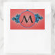 Blue Lush, fractal arabesque with red monogram Rectangular Sticker