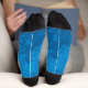 Lyre with four strings on blue grunge background. Custom top stripe colour. Custom text on each sock.