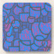 A set of 6 stylish cork-backed coasters or table mats, with an electric blue and magenta abstract pattern, from a silkscreen print by Judy Adamson. Perfect for parties or picnics!