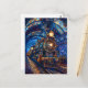 Blue Magical Steampunk Train Loco Faux Mosaic 065 Postcard