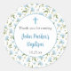 Blue Magnolias boy baptism thank you sticker is perfect for thank you favours! The design features watercolor blue magnolias and green botanicals with a small blue cross, room to say "thank you for coming", the child's name and the date of the baptism or christening. See collection for coordinating items.