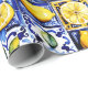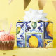 Blue Majolica tiles lemons Mediterranean themed gift wrapping paper.