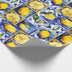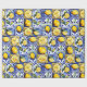 Blue Majolica tiles lemons Mediterranean Wrapping Paper