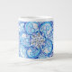 blue mandala in paisley-like patterns on large mug. Design by Rhonda Stewart