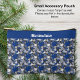 Small Accessory Pouch Blue, grey and white maple leaves on a charcoal background.