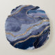 Blue Marble Agate Gold Glitter Glam #1 Round Cushion