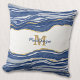 Blue Marble Agate Gold Glitter Monogram Cushion