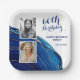 Blue Marble Glitter 2 Photo Birthday Party Paper Plates. Celebrate a milestone in style with this glamourous birthday napkin, featuring striking gold glitter accents, elegant blue marbled background, and space for two personalised photos. Perfect for honouring a fabulous woman turning 60. Customise all text and images to match your details and create a memorable keepsake.