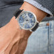 Blue Marble Men’s Watch with Arabic Numerals – Custom Leather Strap Timepiece – Groom, Anniversary, Holidays or Eid Gift.