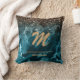 A modern Teal blue Marble and Rose Gold glitter Throw Pillow with a personalised Monogram and Name. Just click on "Personalise this template" to change the Monogram and Name.
