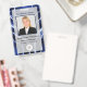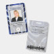 This unique, modern, artistic design features a dark, deep navy indigo blue and white shibori geode batik tie dye watercolor pattern resembling agate, marble, or ocean waves. In the centre on the front is a customisable employee photo and text along with a customisable employee photo, logo image, and text for your business name, the employee's name, title and ID number, on a partially transparent white overlay that lets the marbled pattern show through. The back features more customisable text and a customisable barcode that you can replace with your own, on top of a subtle matching marble tie dye overlay. You can personalise this item by changing the employee photo, logo image, barcode image, and text in the product template.