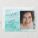 Invite friends and family to share their favourite stories and memories with this elegant blue watercolor marble celebration of life invitation featuring a photo with black and grey text.
