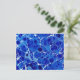 Blue Marbled postcard: this beautiful colourful design is an example of vintage marbled paper reimagined and revitalised. Blue and white colours splash across the lovely design in random shades and sizes like water and sea foam. Paper marbling is an ancient method of aqueous surface design, which can produce patterns similar to smooth marble or other stone. The patterns are the result of colour floated on either plain water or a viscous solution known as size, and then carefully transferred to an absorbent surface, such as paper or fabric. Through several centuries, people have applied marbled materials to a variety of surfaces. It is often employed as a writing surface for calligraphy, and especially book covers and endpapers in bookbinding and stationery. Part of its appeal is that each print is a unique monotype that is extremely pleasing to the eye.