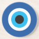 Blue Mati Evil Eye round sandstone drink coaster. Blue mati Greek / Turkish symbol for protection and good luck. Custom table decor for home, party, wedding, bar, restaurant, office etc.