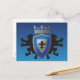 Mediaeval Lion Heraldry Postcard. A Coat of Arms design featuring twin lions, a shield, a crown, and a flir-de-lis. All of which were very symbolic during the mediaeval ages in Europe. Heraldry had depictions of powerful creatures, such as lions, dragons, and griffins, on their armour and weapons. It was a way to identify combatants on the battlefield.