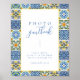 This elegant photo guest book features intricate blue tile patterns inspired by the captivating landscapes of the Mediterranean coast. Infused with the refreshing spirit of citrus, delicate illustrations of lemons and oranges grace the pages, creating a touch of zestful celebration.