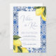 Blue Mediterranean Tile and citrus wedding Invitation