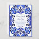 Blue Majolica Mexican Talavera Spanish French Mediterranean tiles wedding all in one editable template invitations instant digital download. Modern watercolor tiles blue colours. All in one invitation with wedding and rsvp details at the back.