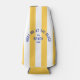 Blue Meet Me At The Beach seltzer bottle cooler is for your group beach trip or get together. Yellow cabana stripes with blue distressed custom beach lettering. Personalise with the details of you beach trip... year and beach destination. Perfect for a family or friends beach get together or beach club bachelorette or as a memento for a past trip. Matching accessories available in the Meet Me At The Beach Yellow Cabana Stripe Collection.