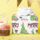 The repeated pattern on this cute Christmas wrapping paper is an image of a Blue Merle Australian Shepherd Dog wearing a red and white Santa hat. The dog sits among brightly wrapped gift packages beside a decorated Christmas tree. A bullfinch bird is landing on the tree behind it. Stylised red and black buffalo plaid text says MERRY CHRISTMAS", and your own signature is in two fields for you to customise.