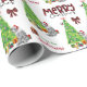 Blue Merle Aussie Dog, Bird and Christmas Tree Wrapping Paper