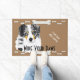 Blue Merle Portrait related custom dog bones doormat using unique original paintings, drawings added to original graphic designs. TO CUSTOMIZE & CHANGE DESIGN * CHANGE TYPE OR COLOR SCHEME * ADD YOUR FAVORITE IMAGE * ADD, CHANGE TEXT OR DELETE TO LEAVE IT BLANK