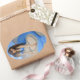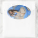 A romantic blue tailed mermaid draws a heart in the sand a the beach. Reproduced from the original painting by Sue Halstenberg.