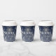 Sip your favourite holiday beverages with a festive set of Blue Merry and Bright Snowflakes Christmas Holiday Paper Cups. Paper cup design features falling snowflakes with the greeting Merry and Bright in a modern font and a soft white overlay. Additional gift and holiday items available with this design as well.