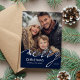 Blue Merry Christmas Script Photo Foil Holiday Card
