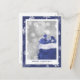 Custom blue Merry Christmas postcard featuring falling snow, snowflakes and a sack full of Christmas presents. More colour options available.
