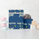 Coloured Merry Christmas lights wrapping paper for kids and adults. Playful design with colourful light bulbs and custom seasons greeting message. Personalizable with name of adult or child. Blue or custom background colour.