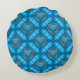 Blue Metal Flowers with Gems Pattern Round Cushion