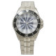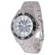 Has heft and feel of expensive stainless steel quartz watches. Good band with safety catch. I removed links, which is easy because engraved arrows show direction to push the linking pins. As always by this seller, the image (a railroad logo) is a perfect reproduction of my emailed image, and is precisely spaced and aligned.