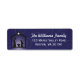 This design features a silhouette of the holy family in the stable, Mary and Joseph and looking over baby Jesus in the manger. The background is a dark midnight blue with watermark swirls to add texture. To change the font style, size or colour, click the Customise It button.