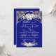 Blue Minimal Floral Gold Islamic Muslim Wedding Invitation