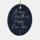 Blue Minimalist Modern Script Merry Christmas Ceramic Ornament