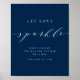Blue Minimalist Script Let Love Sparkle Wedding Poster