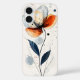 A dreamy abstract flower rendered in blue and orange watercolor strokes, floating against a white backdrop, perfect for lovers of soft elegance.