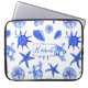 Blue mixed seashell pattern-custom monogram-name laptop sleeve