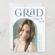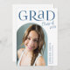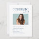 Blue and white simple graduation announcement features 2 photos with modern typography and arch shape, elegant and fun, Custom it with your own photo and grad party information.