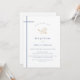 Blue Modern Bird Cross Christening Boy Baptism Invitation