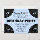 Light blue centre on black birthday party invite. Blue and black gives this a modern look. Add the age or leave it blank - Complete with RSVP