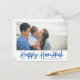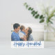 Blue Modern Calligraphy Happy Hanukkah Photo Holiday Postcard
