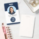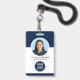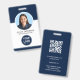 Personalise this navy blue minimalist company ID card with your employee photo and name, job title, business information, logo and QR code. Shown here as a "Design Consultant" Photo ID Badge, this modern navy blue and white coloured design can be fully customised for any corporate business. Simply edit the text, photo, logo and QR code fields to create your own personalised company ID badge. This simple, stylish ID badge is perfect for all professions including graphic designers, interior designers, hair stylist, hairdresser, medical employees and hospitals.