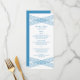 Simple and elegant Modern Deco Wedding Menu Card with a striped criss-cross hatched art deco design in blue. This classic menu card can be easily customised with your wedding details. For more customisation options, click on the Customise It button.