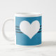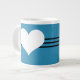 Sweet and charming Modern Heart Speciality Mug featuring a light blue background and a cute heart and striped border. This cute and girly mug is perfect for enjoying your favourite hot beverage! Customise with the text of your choosing. Click on "Customise" to find additional personalisation options.