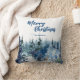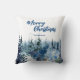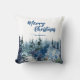 Blue Modern Merry xmas trees forest raindeer Cushion