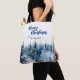 Blue Modern Merry xmas trees forest raindeer Tote Bag